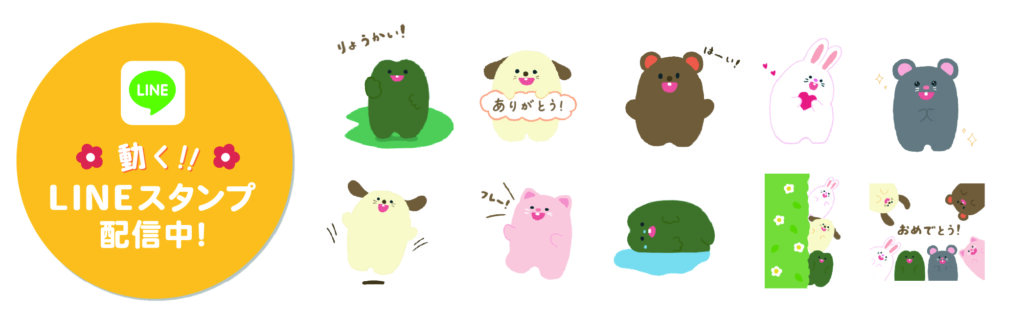 動くLINEスタンプ配信中! 全16種|販売価格250円 「ぽちっぱ」で検索してね♪